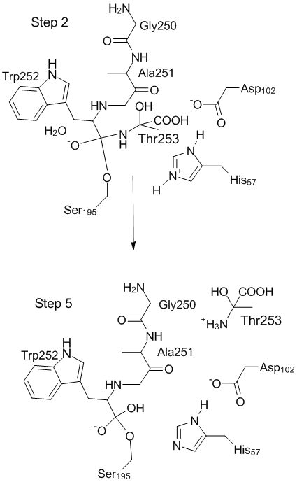 Transition state between Steps 2 and 5 of Chymotrypsin Mechanism