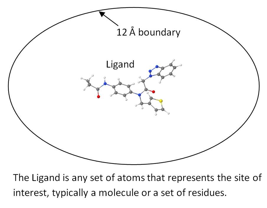 (2) All atoms that are within 12 Ångstroms of any ligand atom in the site of interest.