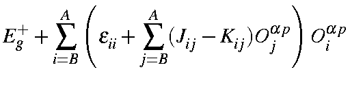 \begin{displaymath}\epsilon_{ij} = \epsilon_{ij}^+ + \sum_{k=B}^A(<ij\vert kk>-<ik\vert jk>)O_k^{\alpha g}